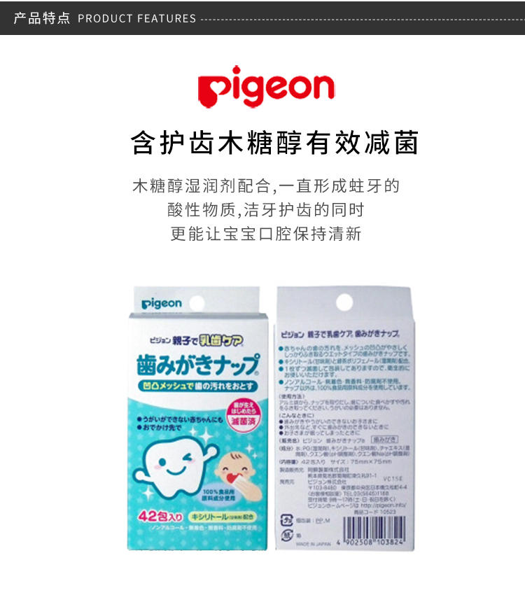 日本贝亲pigeon婴儿口腔清洁湿巾42片