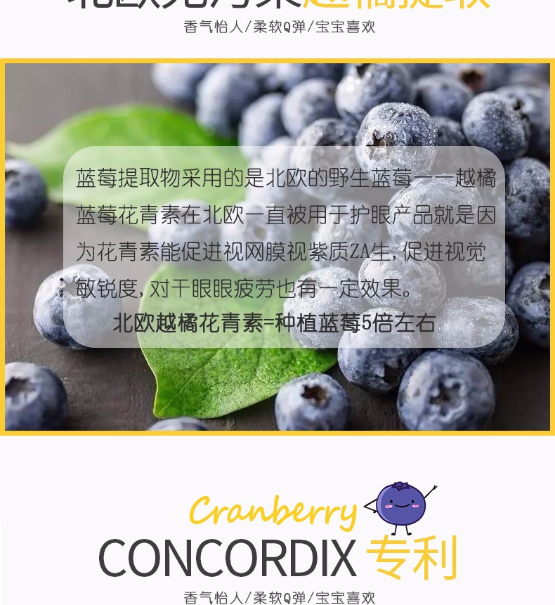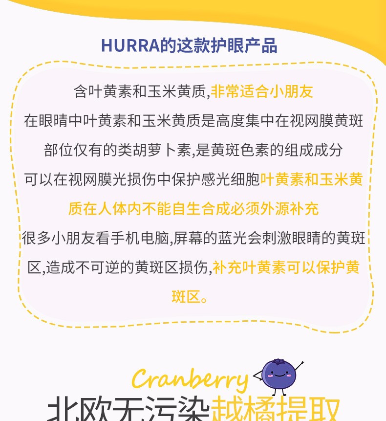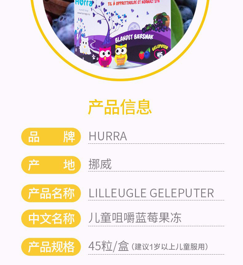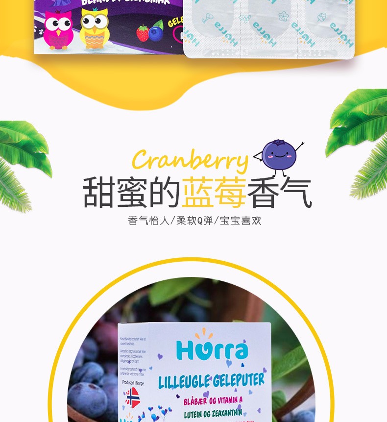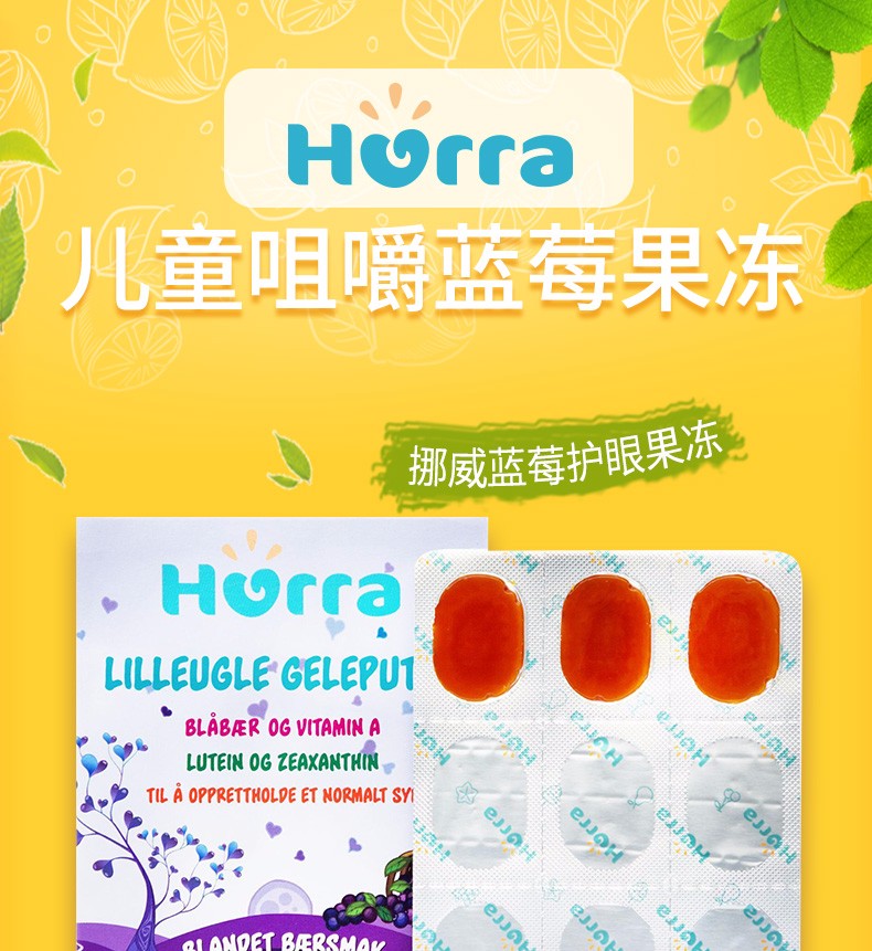 挪威进口Hurra北欧越橘儿童叶黄素蓝莓果冻护眼维生素软糖45粒