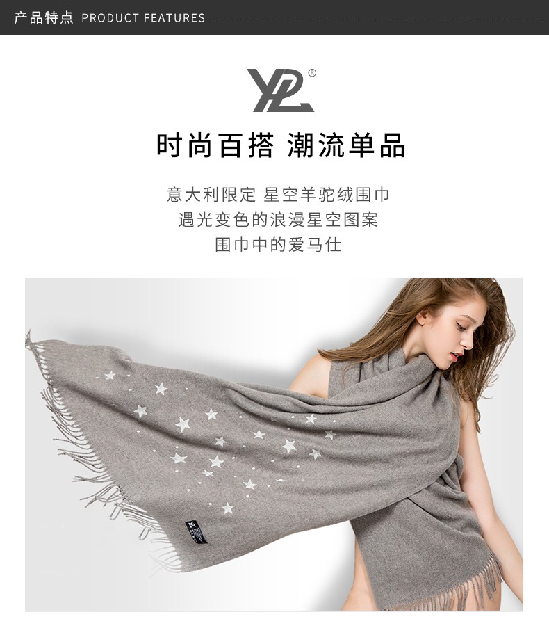 【香港直邮】YPL 星空驼绒围巾 紫外线遇光变色 保暖不扎身 ( 灰色)