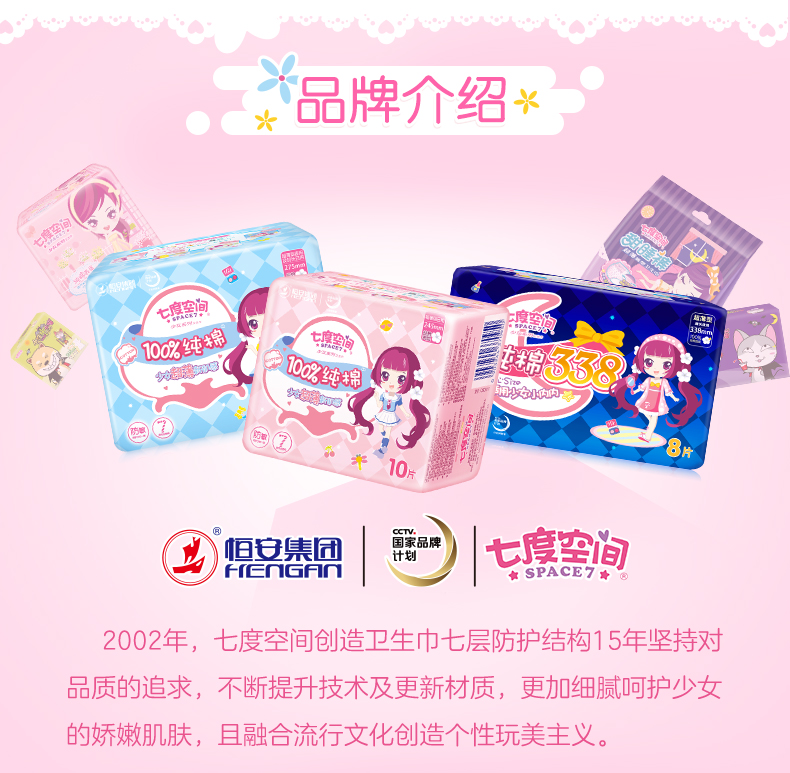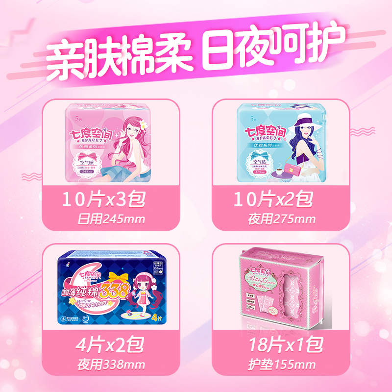 七度空间卫生巾组合装整箱日用夜用姨妈巾76片