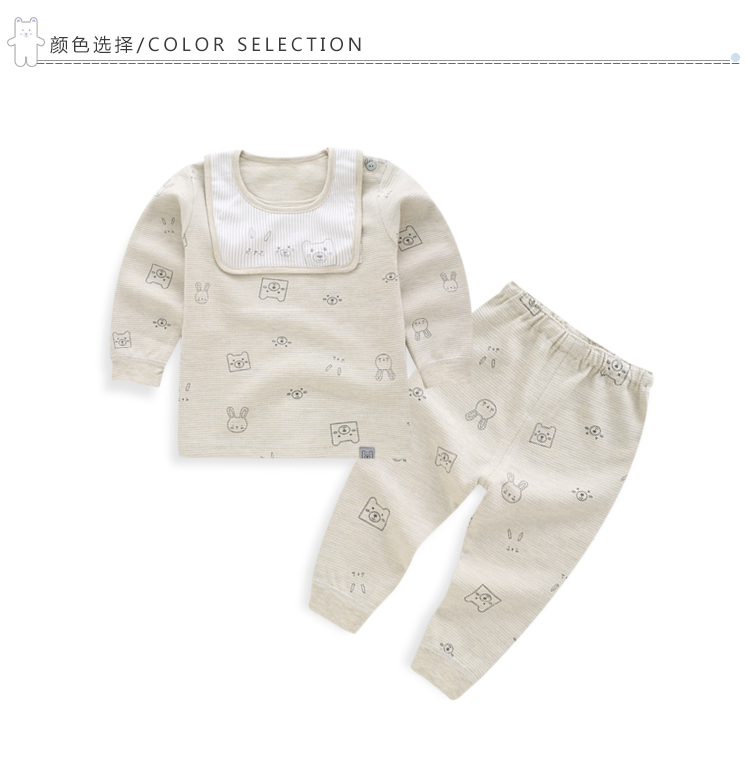 乐比宝宝内衣肩扣两件套家居服睡衣打底衣85325-6小兔与熊90-100-110黄