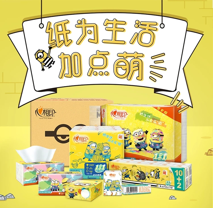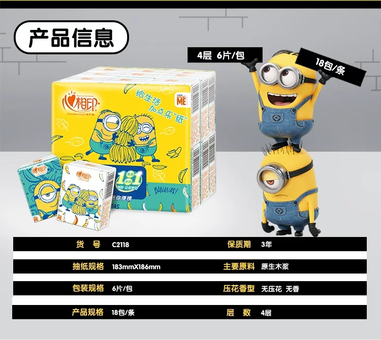 心相印手帕纸小黄人纸巾可爱便携式随身小包4层18包卡通纸巾