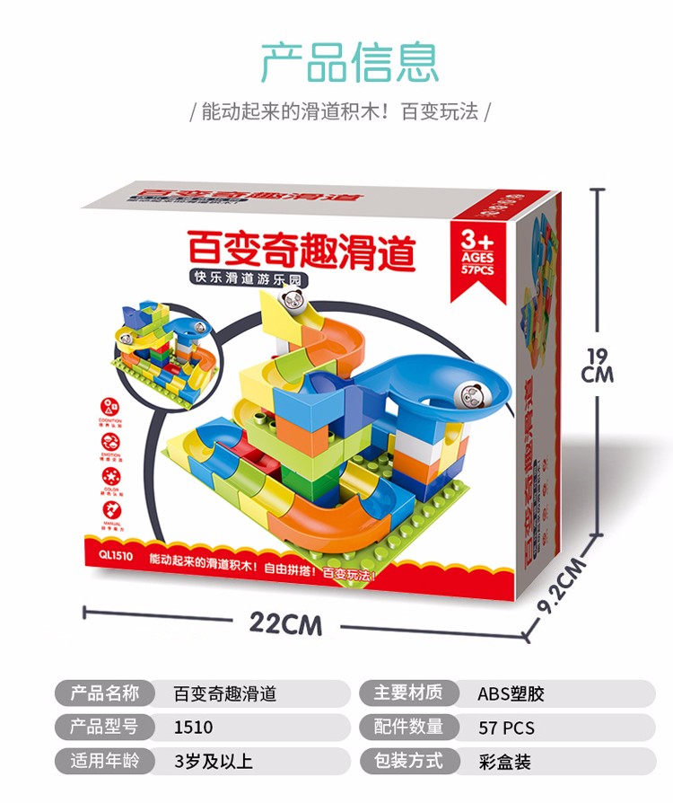 智恩堡兼容乐高大颗粒积木滑道儿童玩具益智diy拼插积木(57颗)