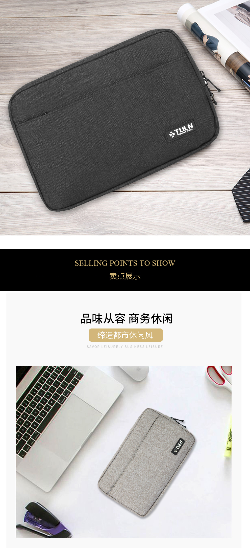 拓蓝(TULN)男士手包证件包便携手机包卡包 深蓝色
