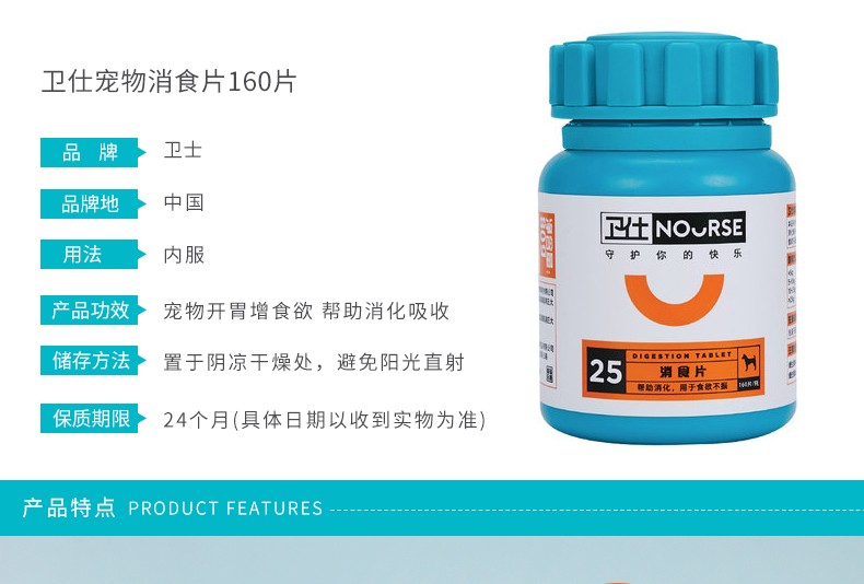 卫仕宠物消食片160片 狗狗调理肠胃挑食开胃增食欲