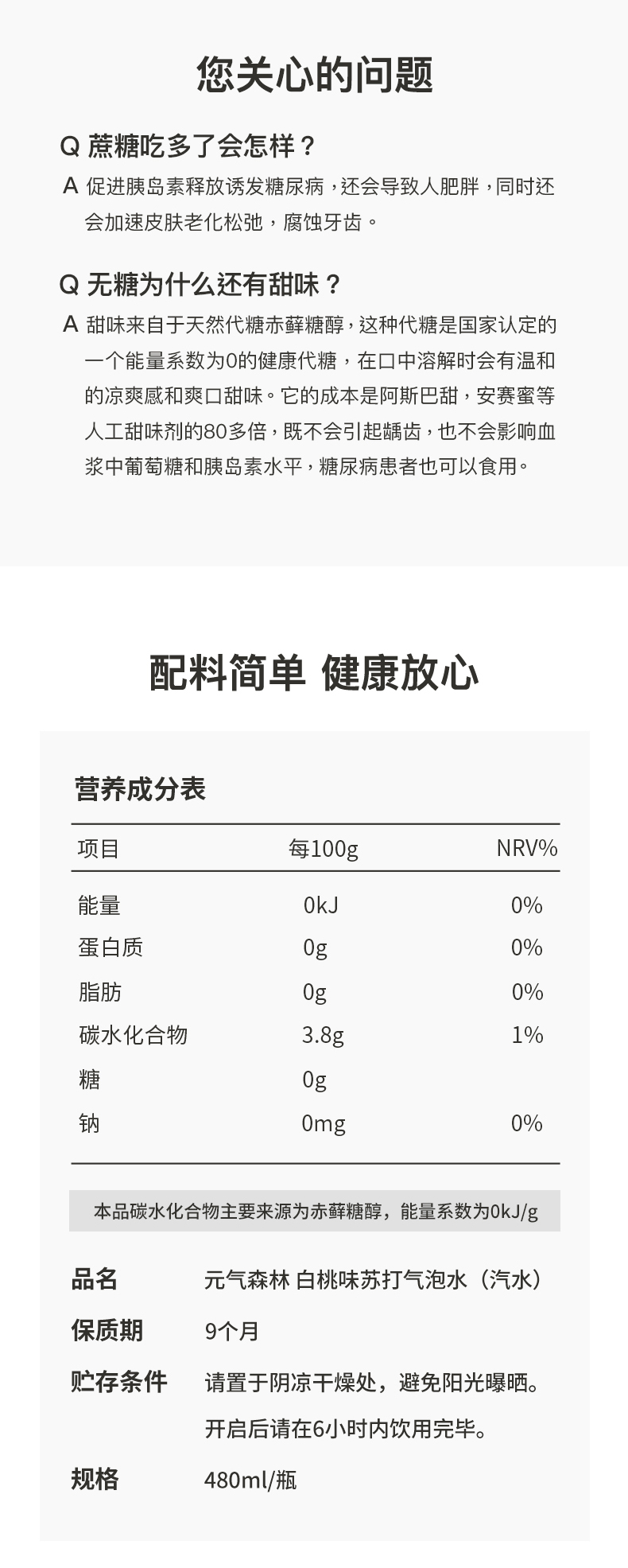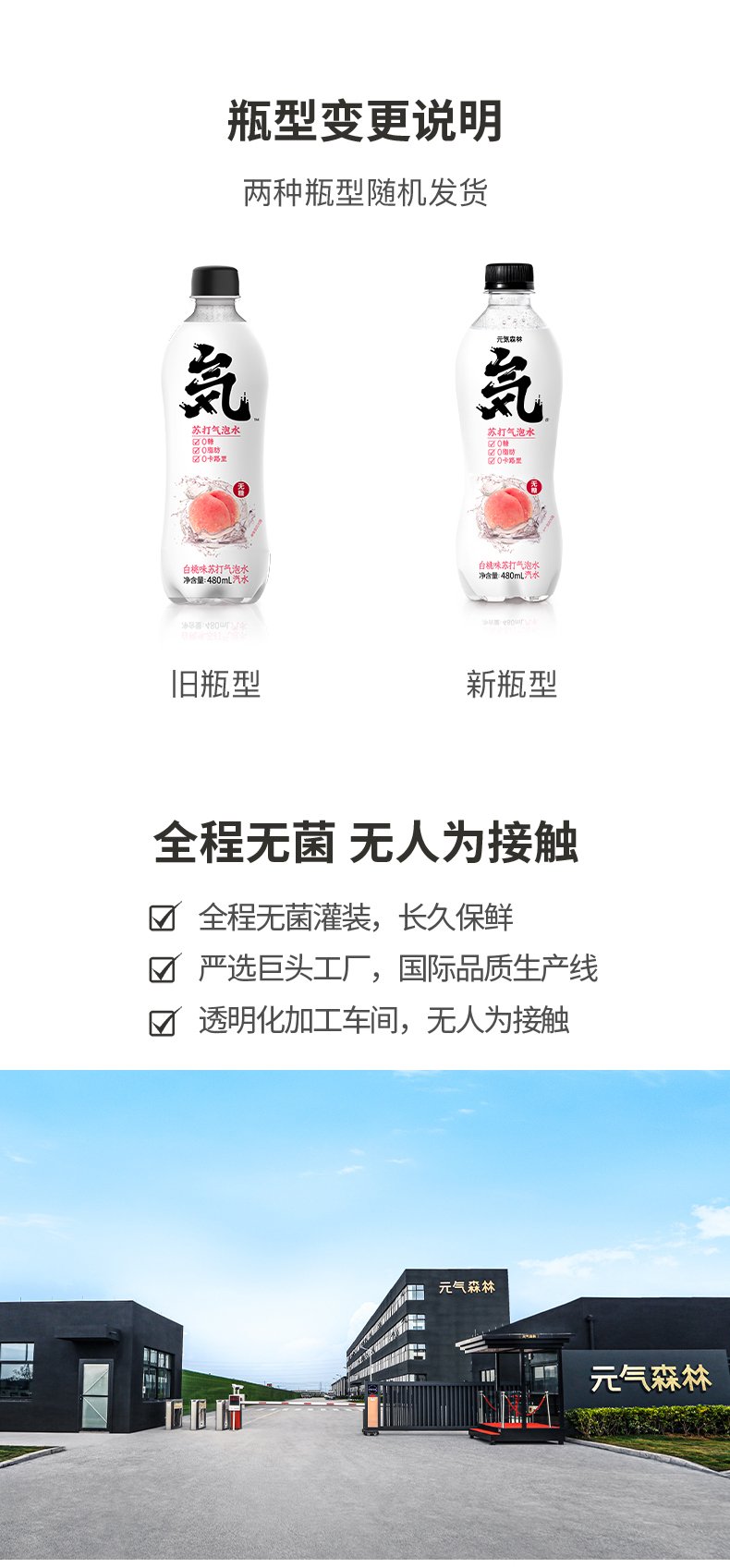 元気森林 无糖0脂 苏打气泡水饮料 480ml*5瓶 白桃味气泡水