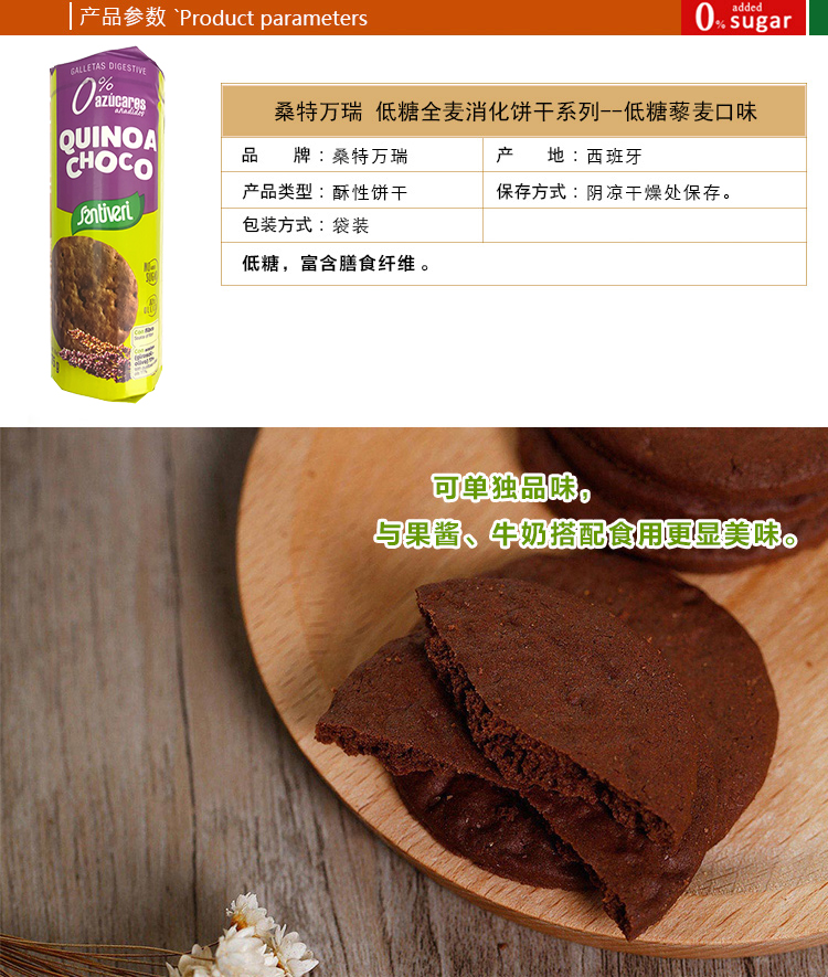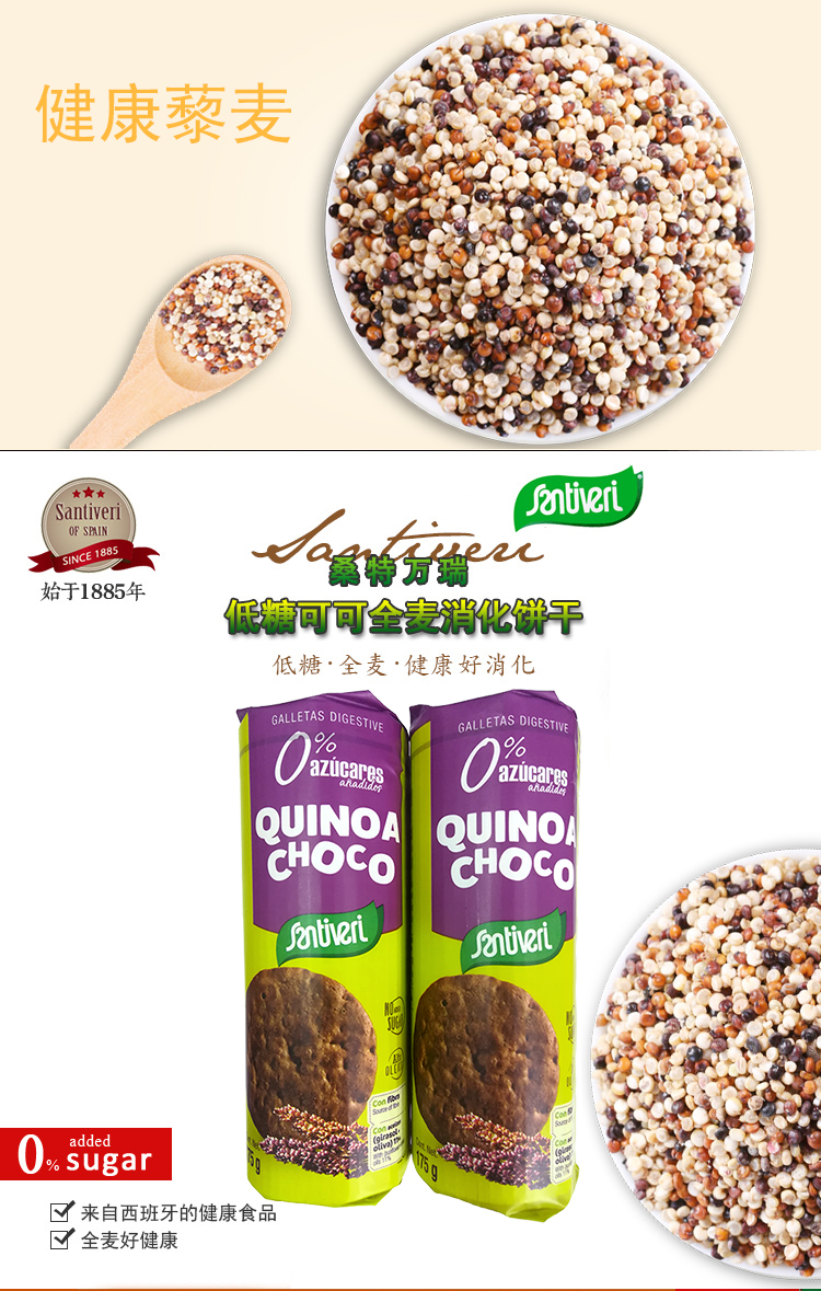 西班牙桑特万瑞低糖藜麦消化饼干(酥性饼干)175g/袋