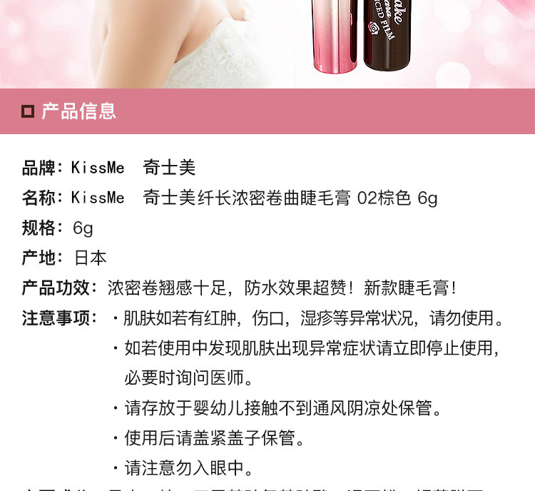 您所在的位置:首页 > 美妆护肤  > 香水彩妆 > 睫毛膏/增长液  > 【日本直邮】KISS ME 奇士美 花漾美姬纤长卷翘防水睫毛膏 第3代 02棕色 6g
