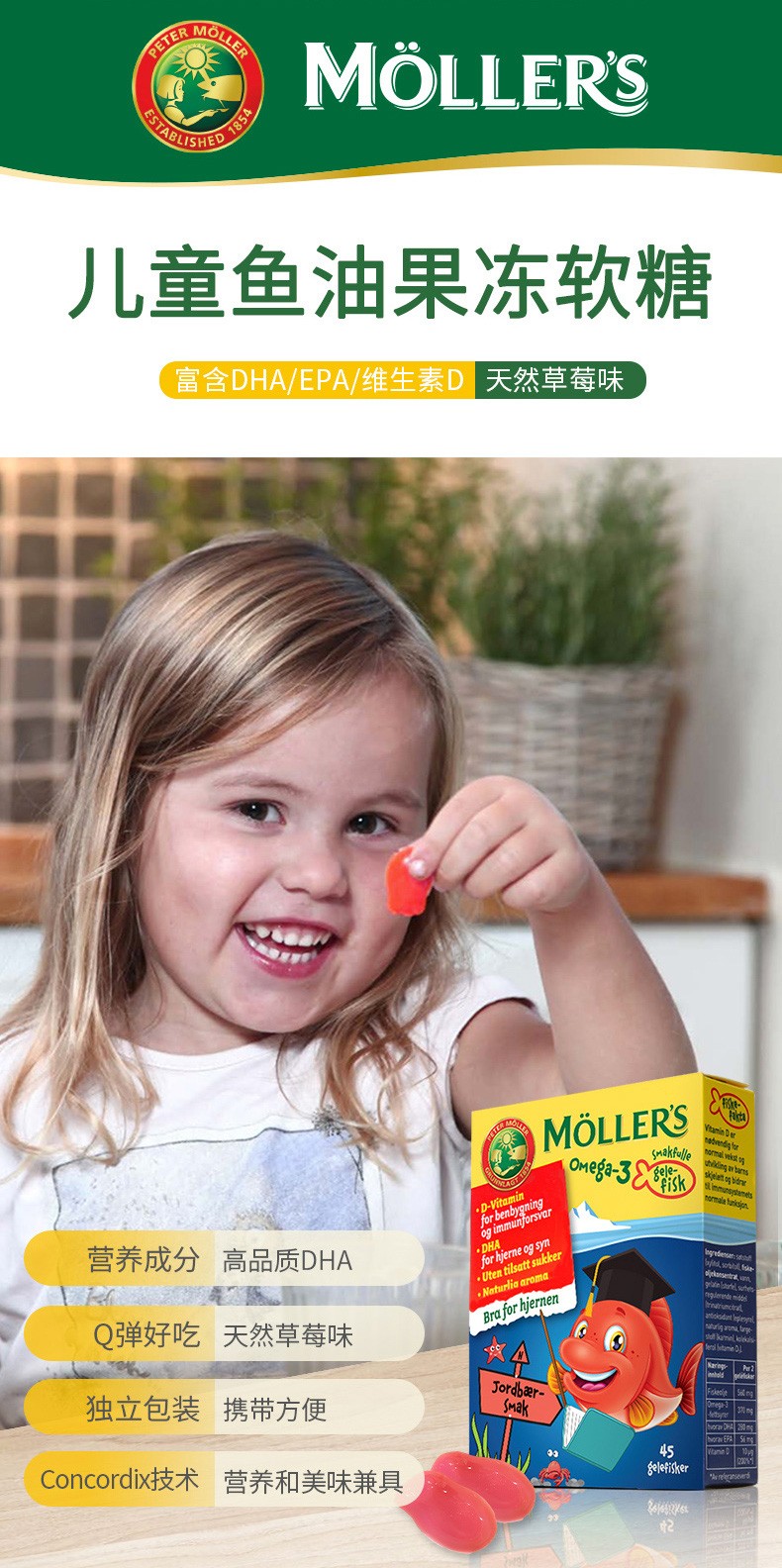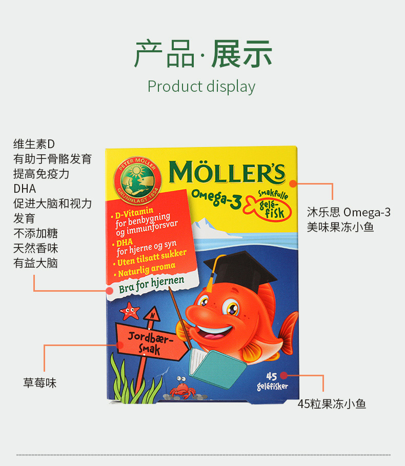 您所在的位置:首页 > 营养保健  > 营养成分 > 鱼油/磷脂  > 【授权商品】Mollers 沐乐思 果冻鳕鱼鱼油 草莓味 45粒/盒