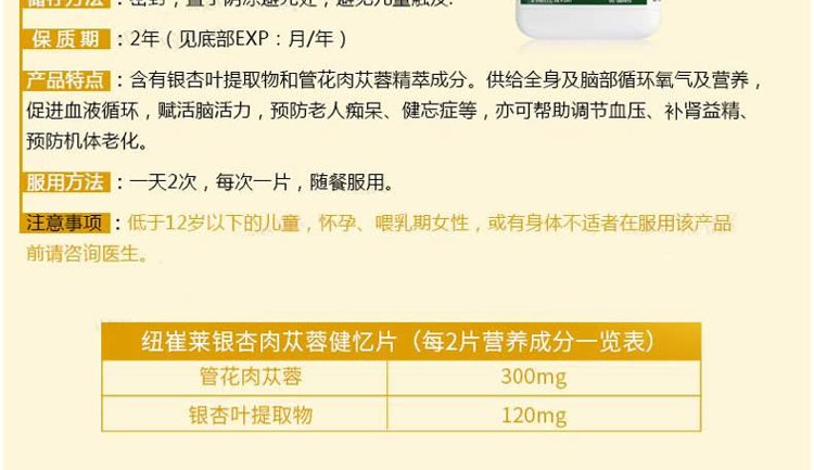 【美版】NUTRILITE 安利纽崔莱 银杏叶片健忆片提升记忆力60片 预防老年痴呆