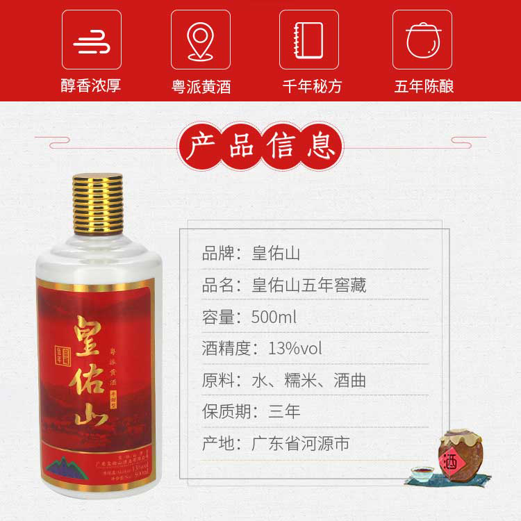 皇佑山 粤派黄酒 五年窖藏(半甜型)500ml