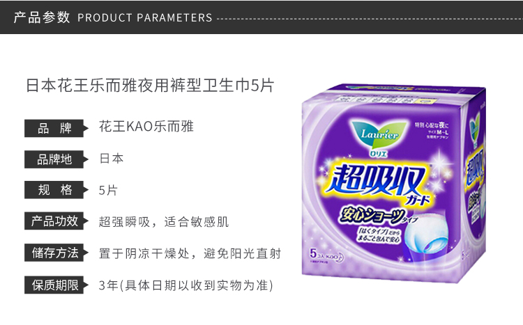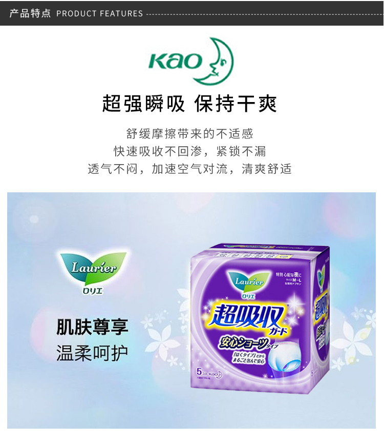 日本花王乐而雅卫生巾夜用棉柔裤型安心裤 5片