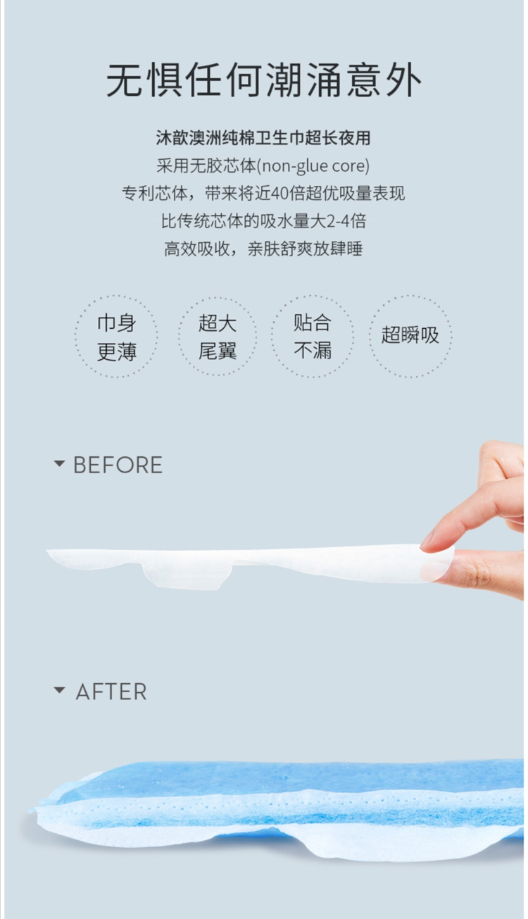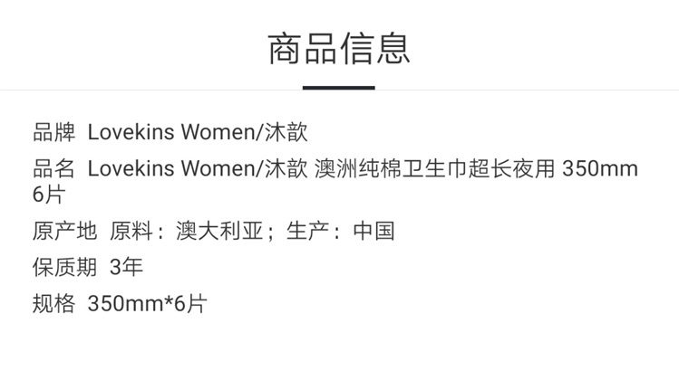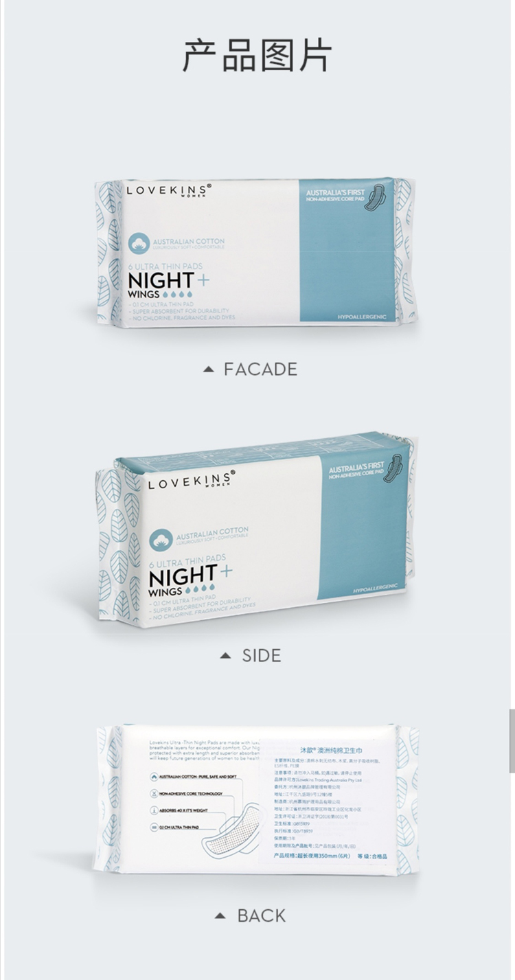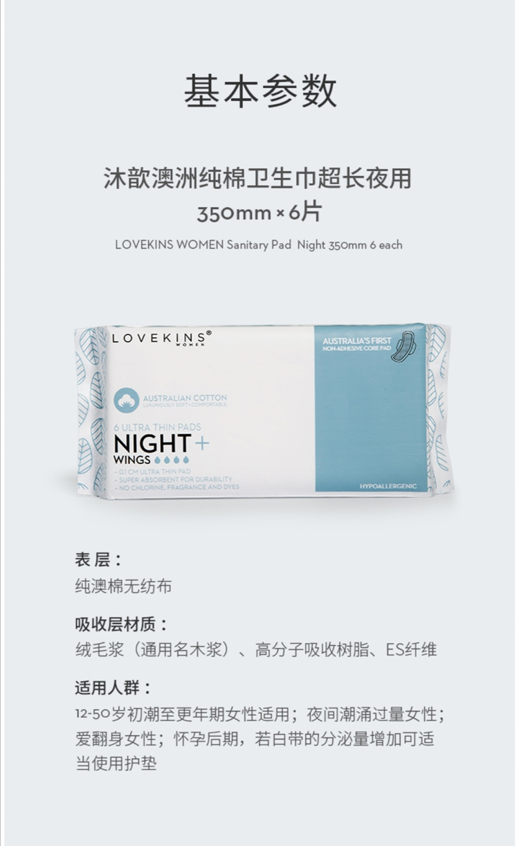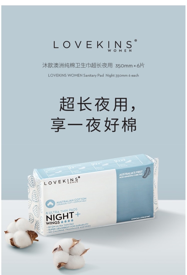 Lovekins沐歆澳棉卫生巾超长夜用(350mm6片/包)