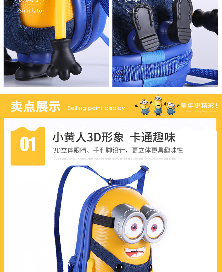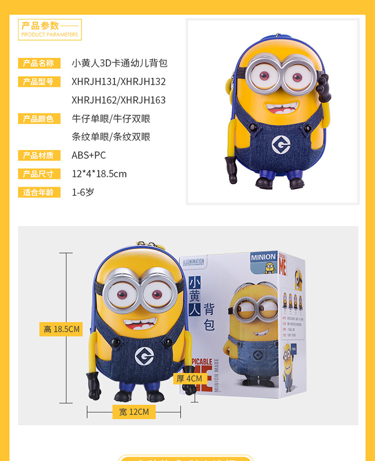 神偷奶爸Despicable Me 背包斜跨包 牛仔条纹单双眼3色装(颜色均发)