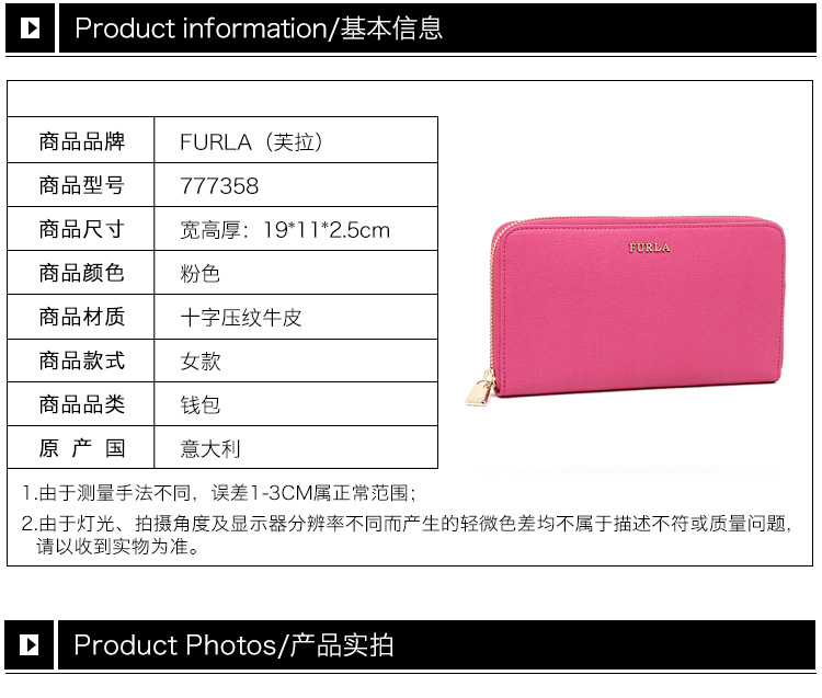 意大利Furla 芙拉 粉色牛皮 钱包女士 777358
