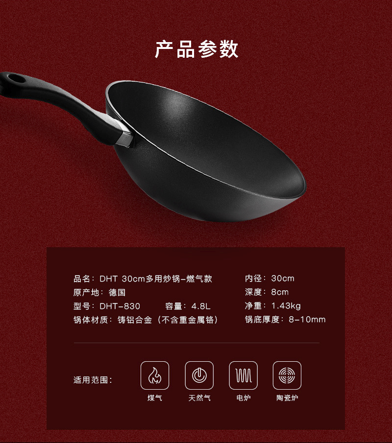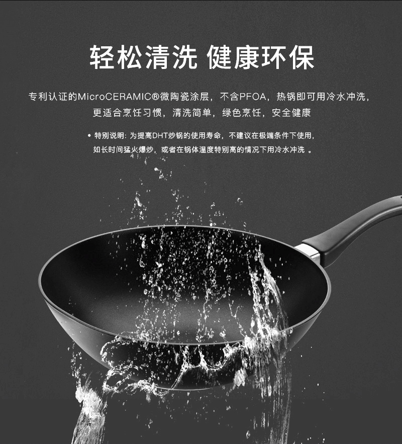 【授权商品】德国原产DHT钛合金微陶瓷复合涂层不粘炒锅燃气款30cm