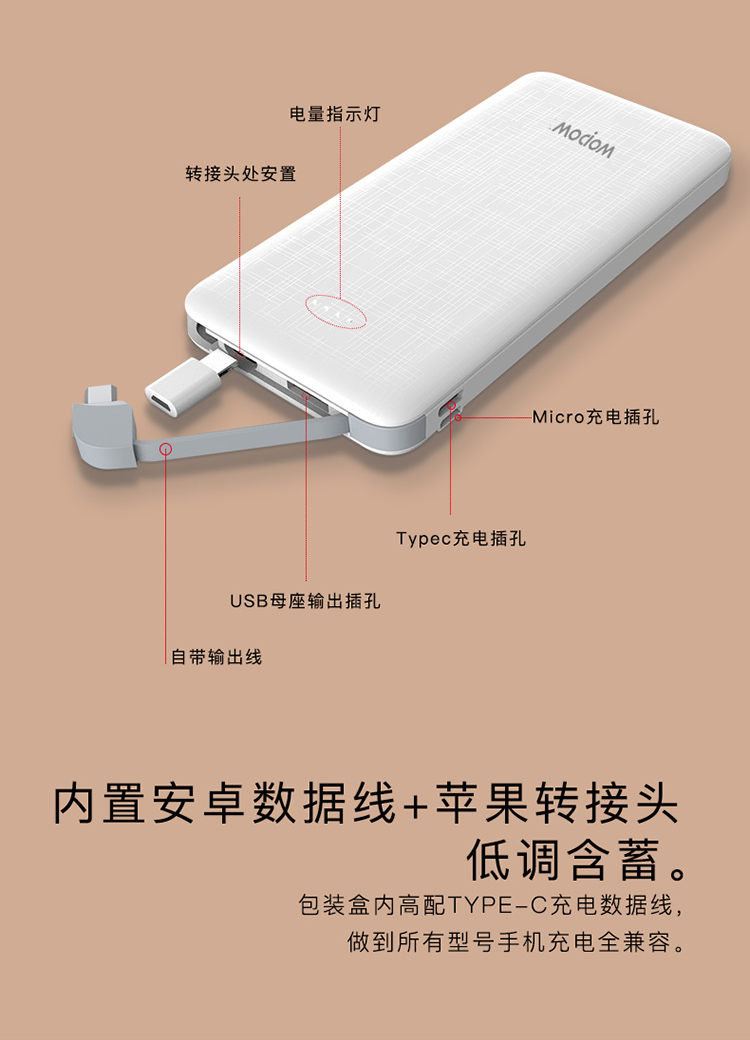 您所在的位置:首页 > 数码电子  > 智能设备 > 其他配件  > 【授权商品】中国wopow/沃品 移动电源自带线机线一体式充电宝 LP08S 白色