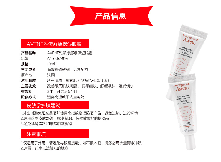 您所在的位置:首页 > 美妆护肤  > 面部护肤 > 眼霜/眼部精华  > 【荷兰直邮】Avene雅漾舒缓保湿眼霜 10ml