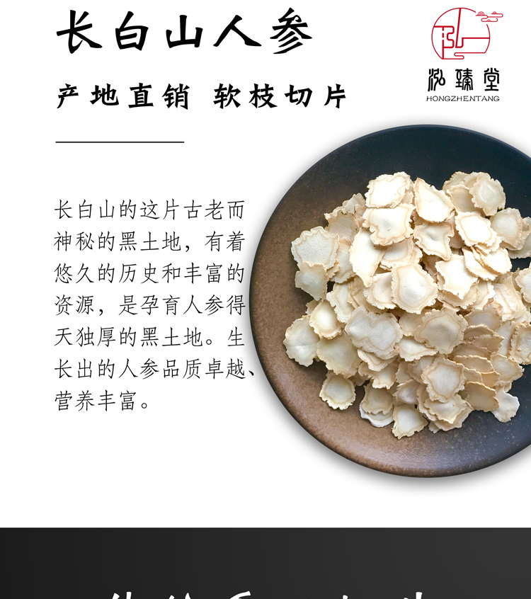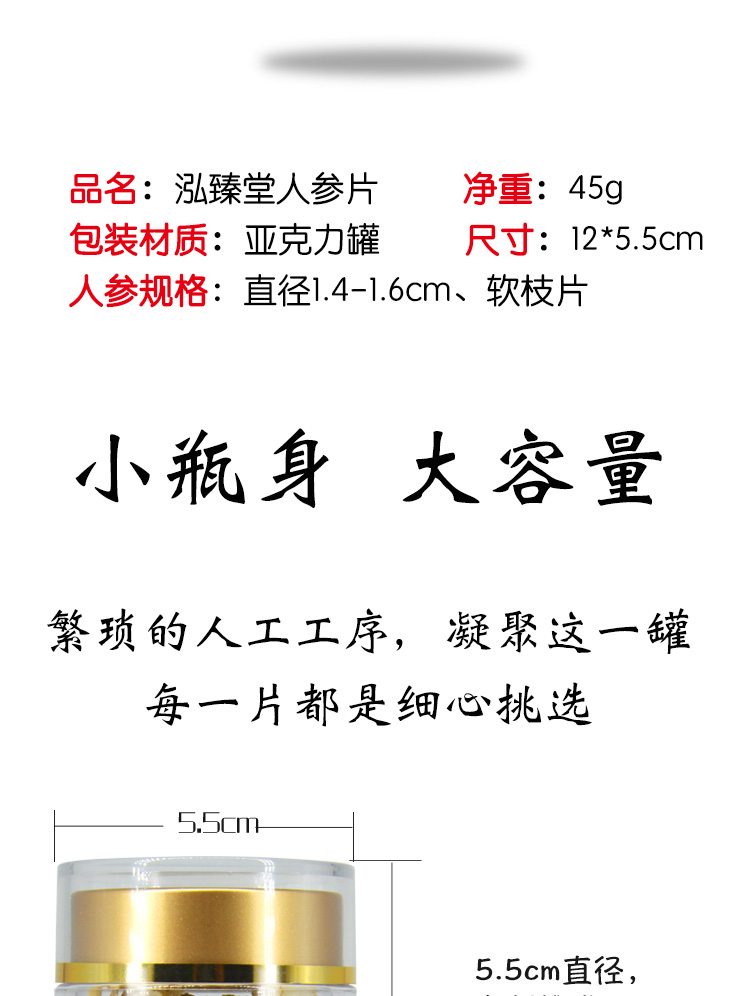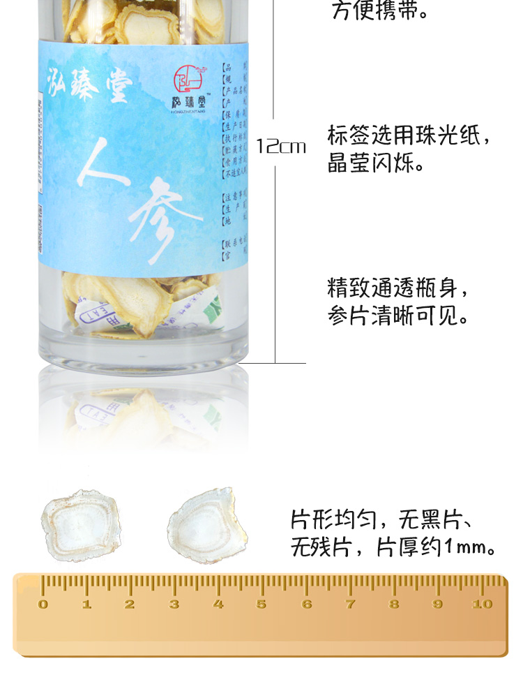 泓臻堂 人参片1.4cm特大片45克亚克力罐装