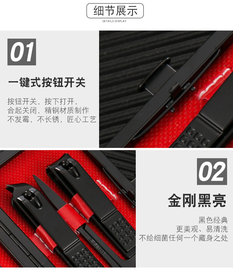 ZUNDUO不锈钢指甲刀套装 7197D 修脚钳美容美甲剪全套工具礼品包 10件套