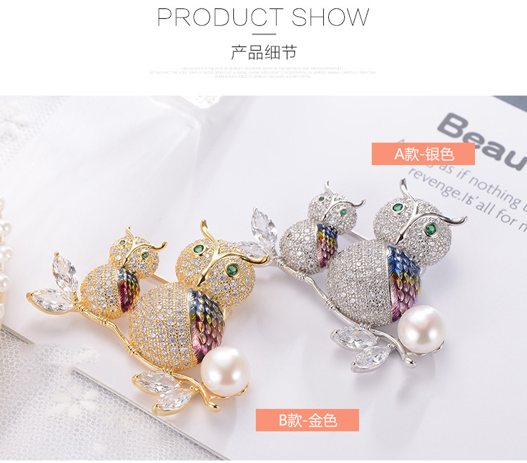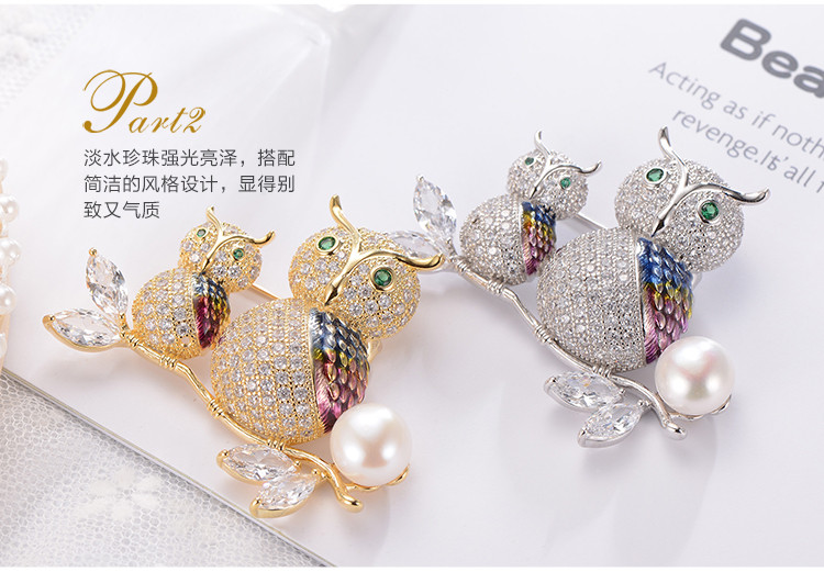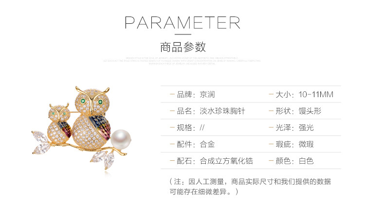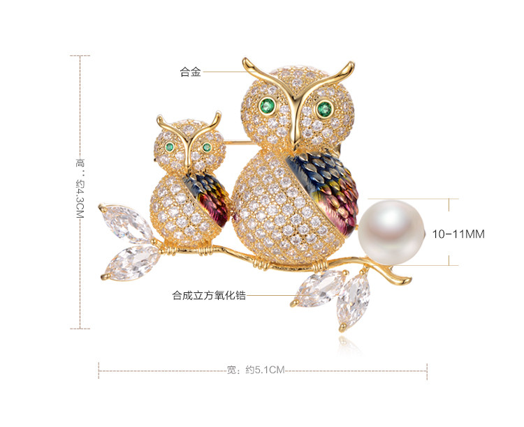 京润珍珠 萌猫 合金淡水珍珠胸针 白色 10-11mm