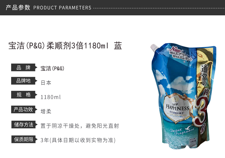 宝洁(P&G)柔顺剂3倍1180ml 蓝