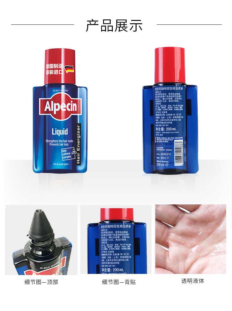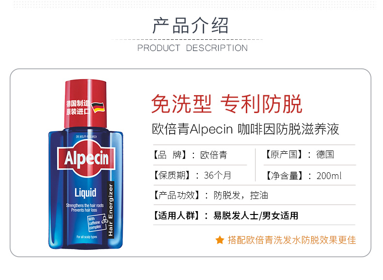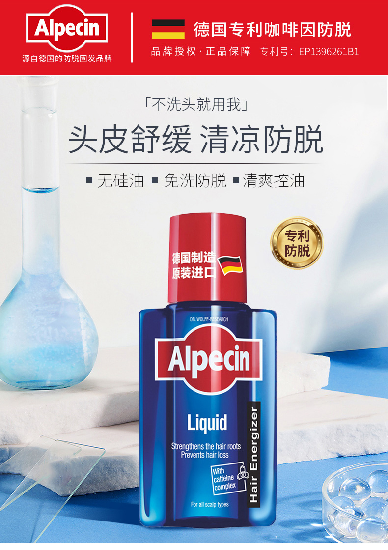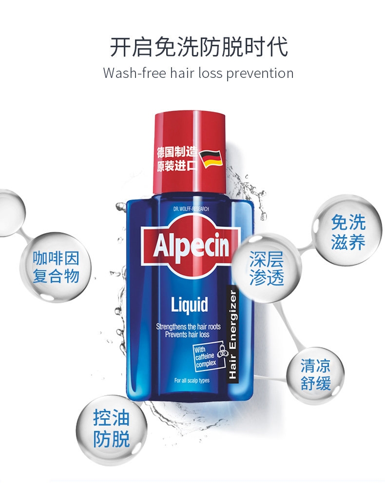 Alpecin欧倍青德国进口无硅油咖啡因防掉发男女免洗发根滋养液200ml