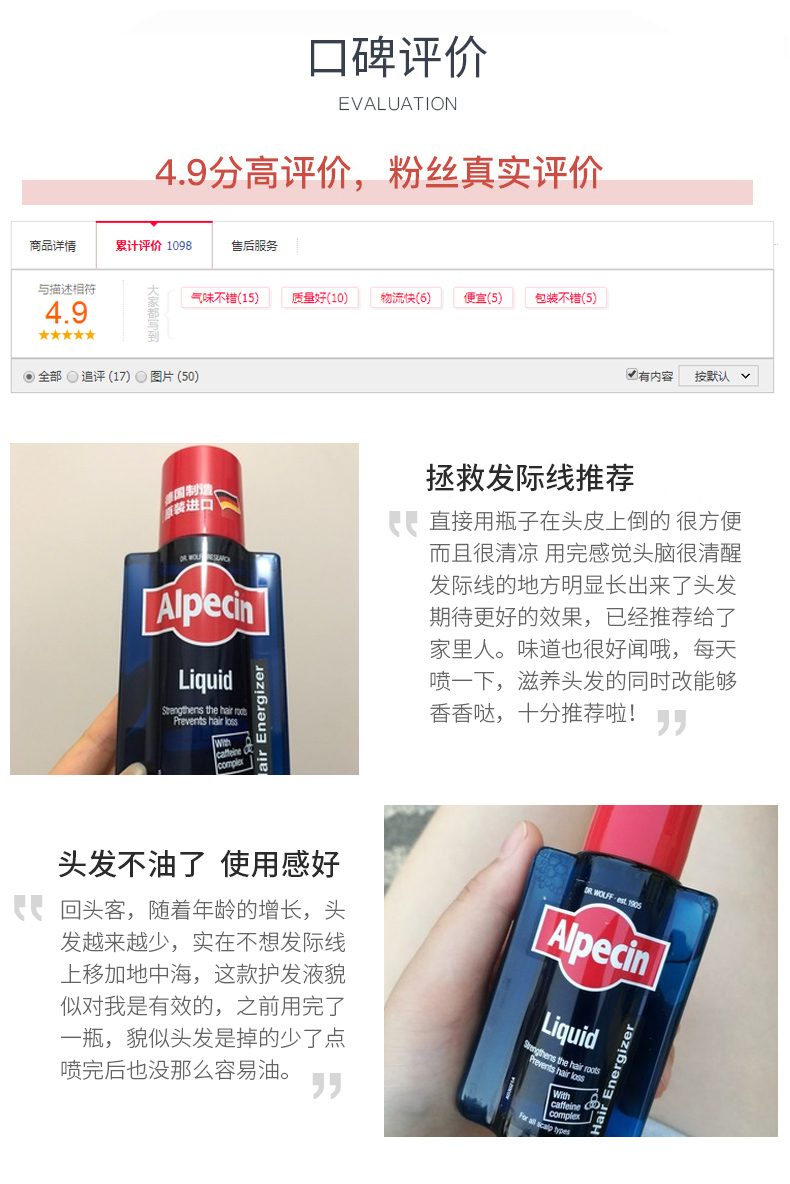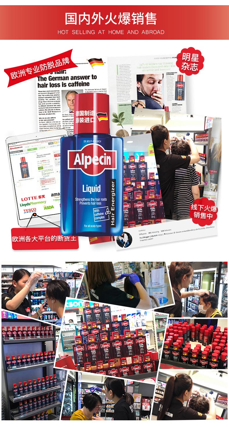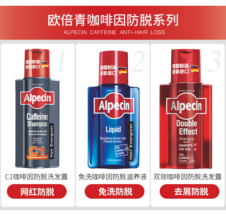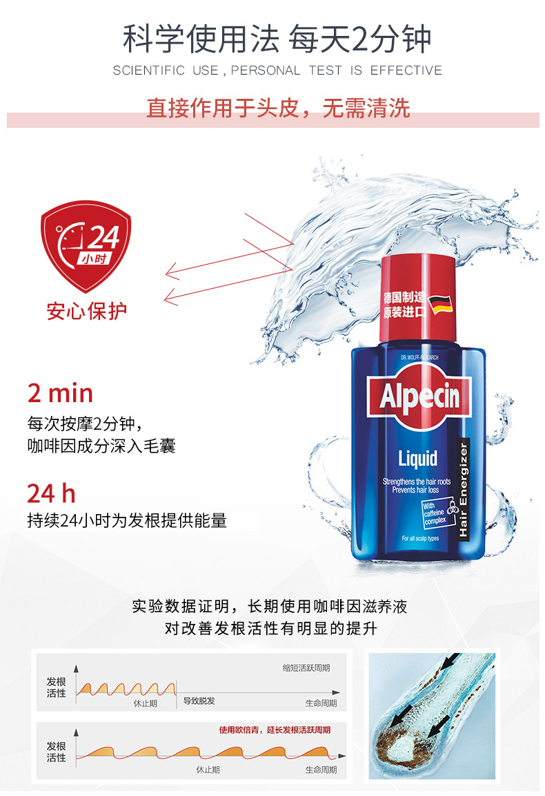 Alpecin欧倍青德国进口无硅油咖啡因防掉发男女免洗发根滋养液200ml