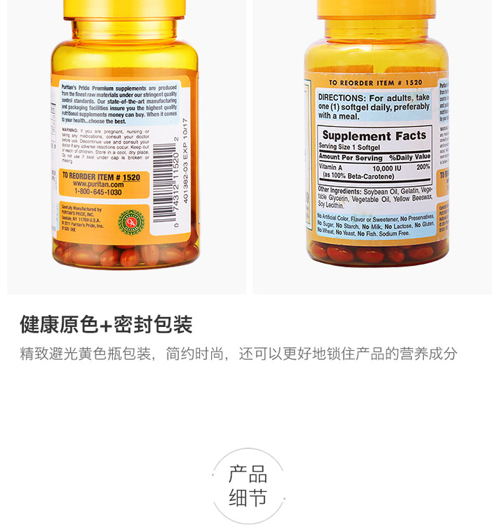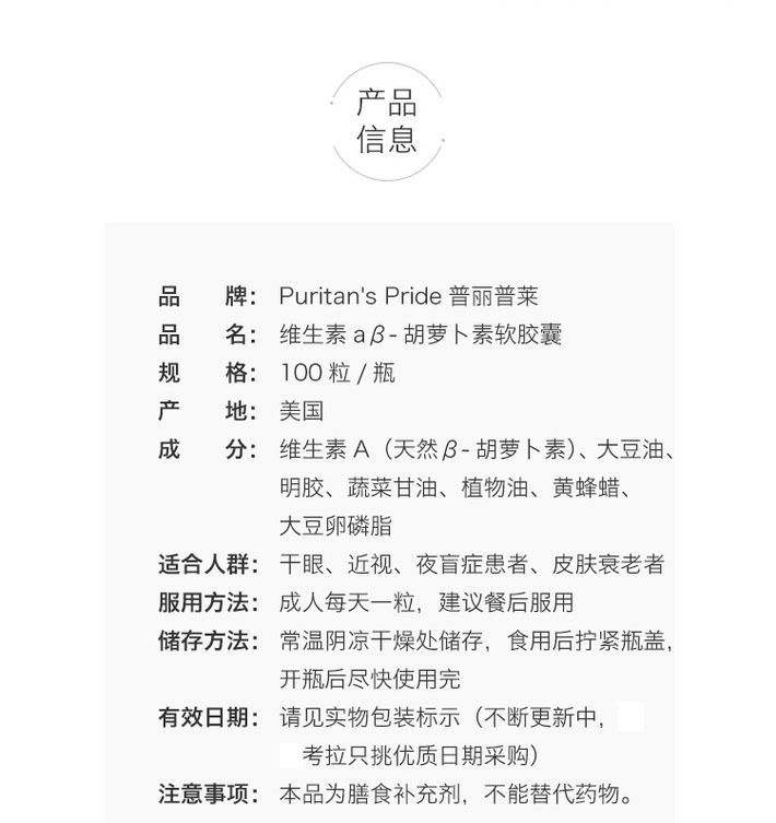普丽普莱 维生素aβ-胡萝卜素软胶囊100粒 保护视力