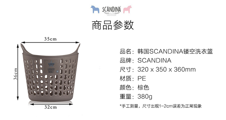 韩国原产SCANDINA镂空洗衣篮收纳篮储存框18L 380g