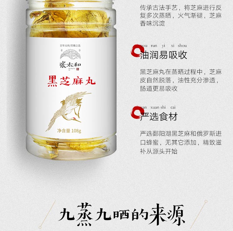 【买二送一】张太和九蒸九晒黑芝麻丸108g纯手工九制蜂蜜黑芝麻丸正品辟谷丸