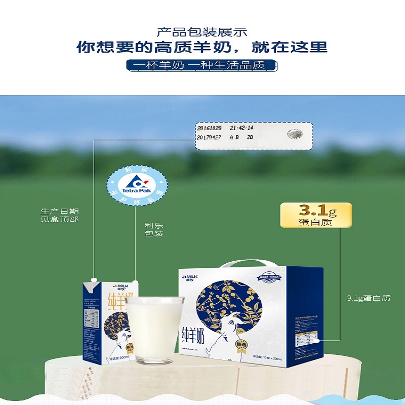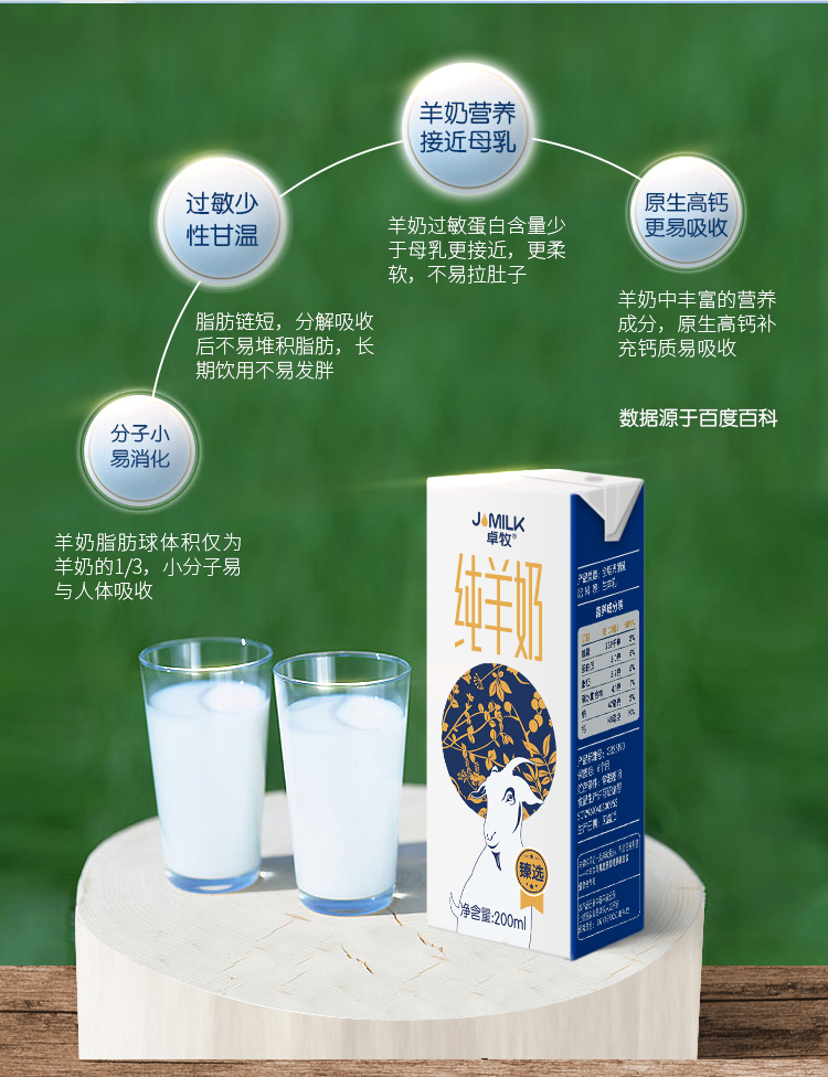 卓牧臻选3.1g乳蛋白纯羊奶 新鲜奶源山羊奶早餐奶200ml*10盒