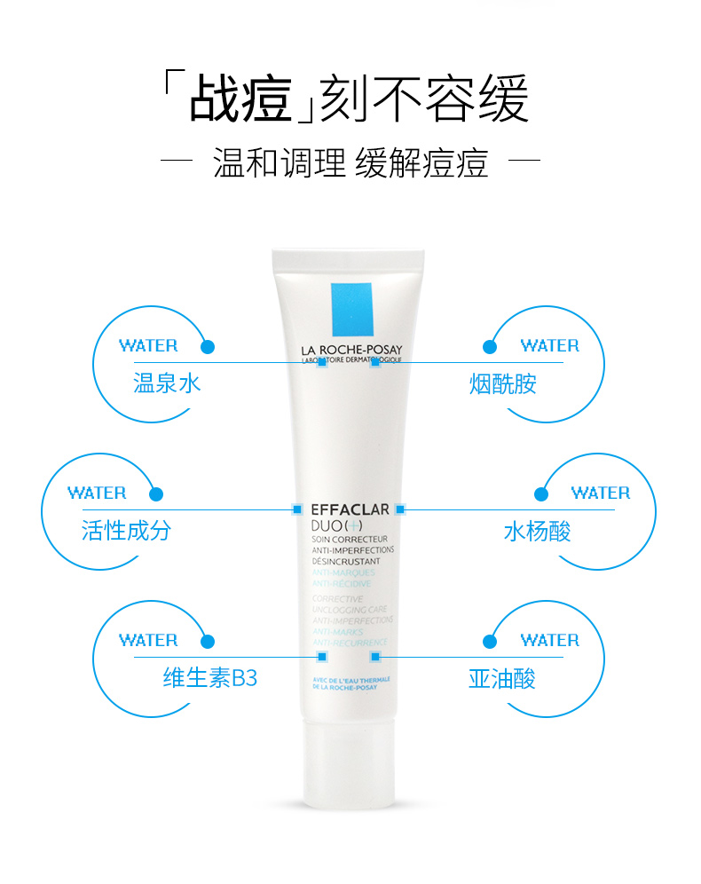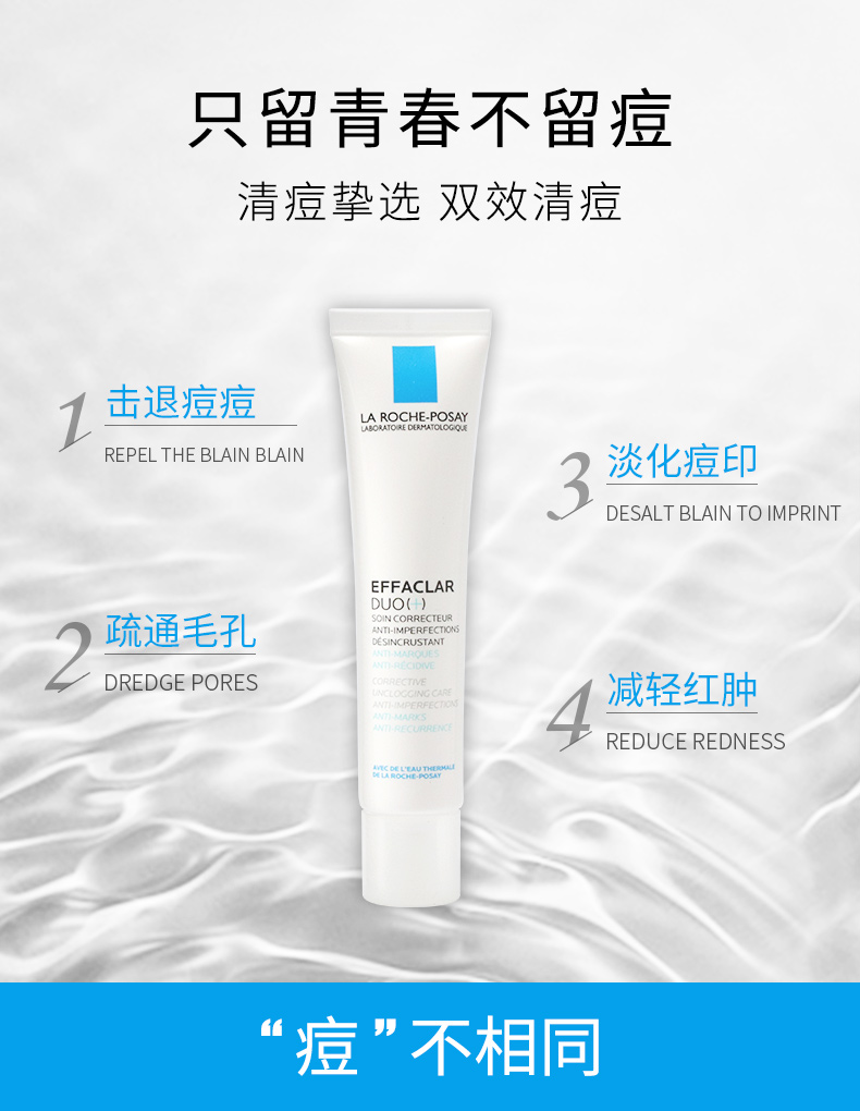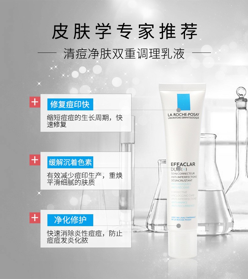 【法国直邮】理肤泉LA ROCHE-POSAY duo+乳青春痘调理精华乳 双重调理淡化痘印40ml