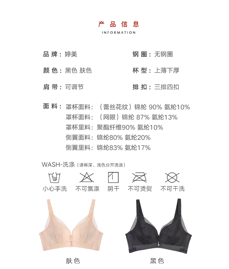 您所在的位置:首页 > 服饰内衣  > 内衣 > 文胸  > 婷美调整型聚拢文胸罩深V性感蕾丝刺绣防滑加宽肩带侧收副乳女士内衣 黑色 尺码70A/70B/75A/75B/80A/80B/85A/85B【下单请备注尺码】