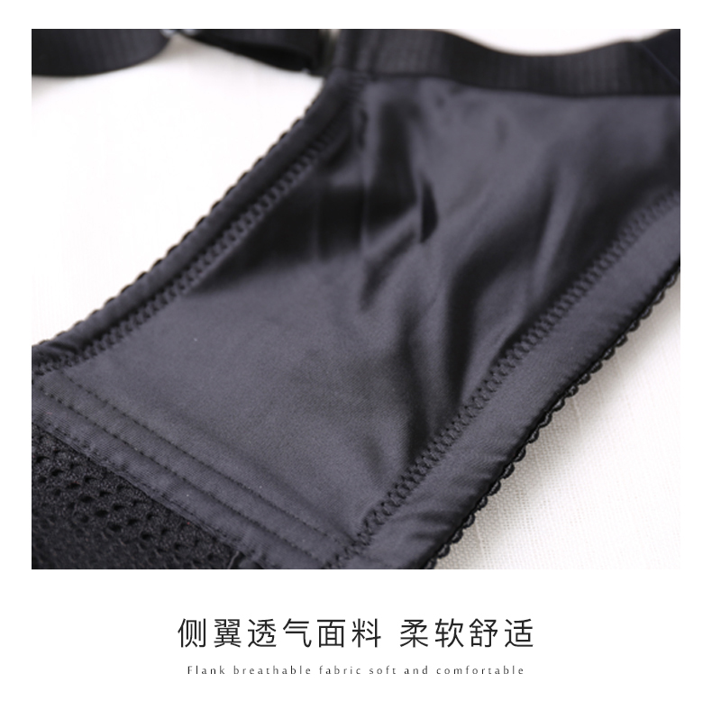 婷美调整型聚拢文胸罩深V性感蕾丝刺绣防滑加宽肩带侧收副乳女士内衣 黑色 尺码70A/70B/75A/75B/80A/80B/85A/85B【下单请备注尺码】