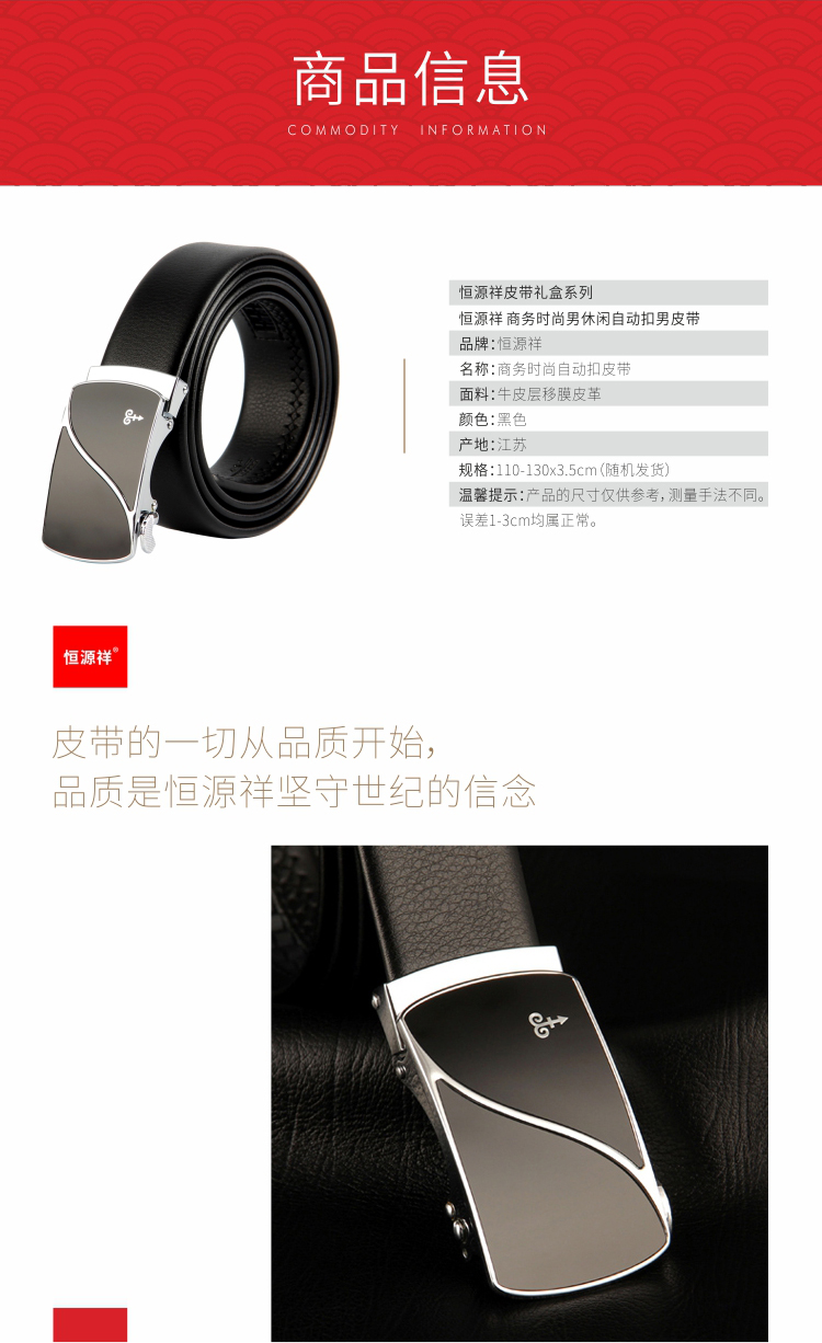 恒源祥 HJD18BB005恒源祥 皮带 (黑色) 自动扣110-130cm