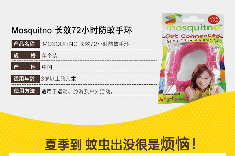 荷兰Mosquitno长效72h防蚊手环(3岁+)颜色随机