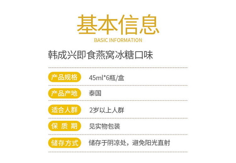 泰国韩成兴冰糖即食燕窝健康滋润营养补品鲜炖45ml*6