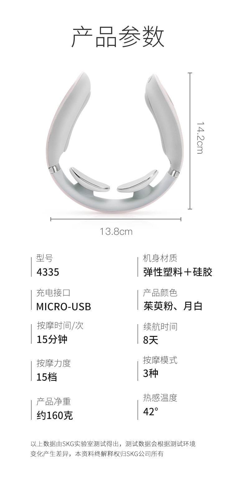 SKG颈椎按摩器办公室护颈仪劲肩部便携脖子智能琪家用李佳琦4335茱萸粉
