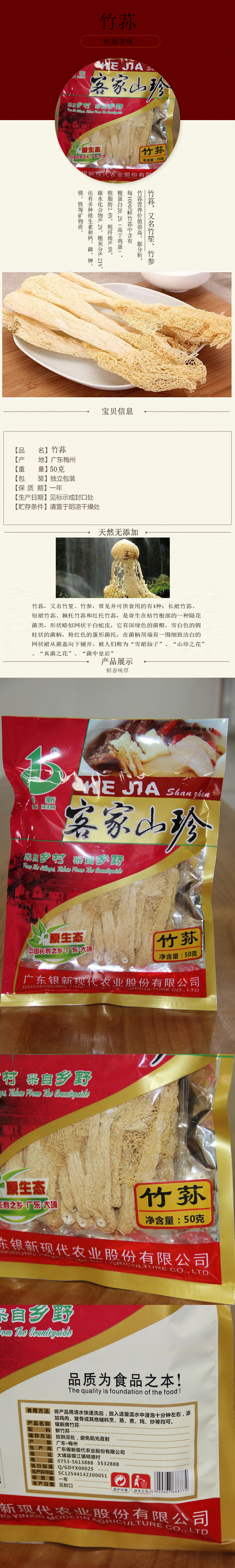 银新客家梅州特产竹荪50克/包