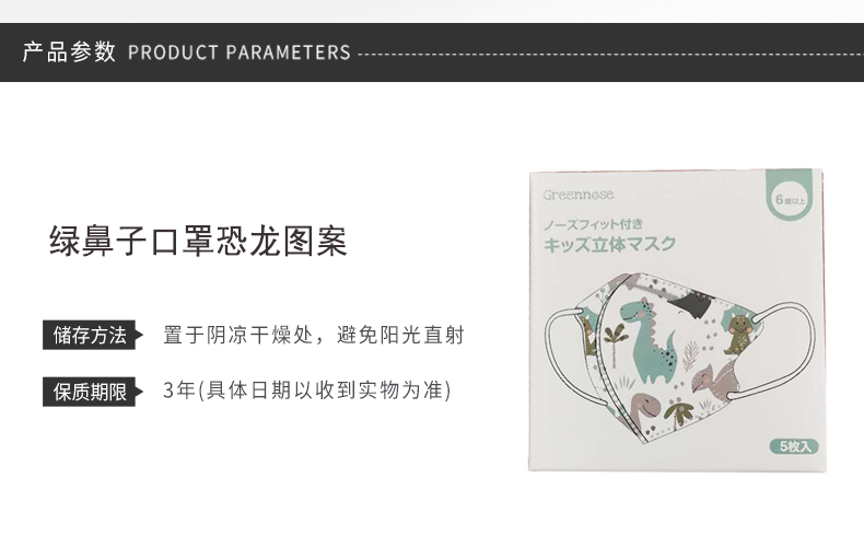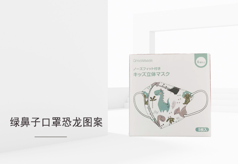 日本绿鼻子儿童口罩恐龙图案6岁5片