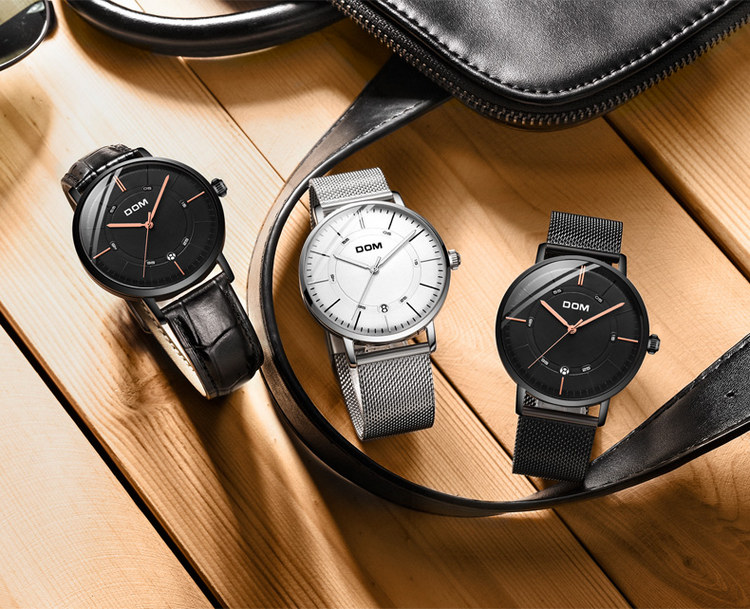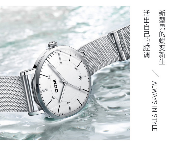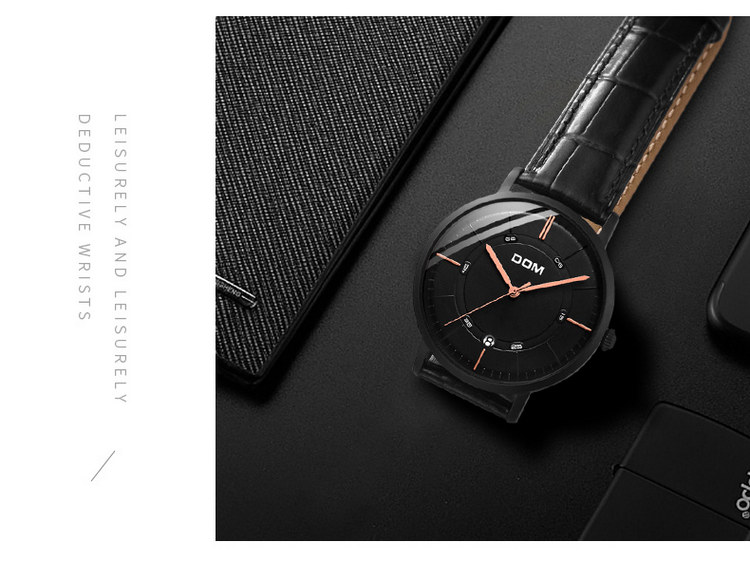 多姆(DOM)手表男全自动超薄镂空机械表M-8106L-7M白盘棕皮带