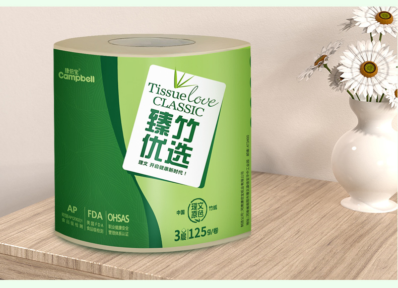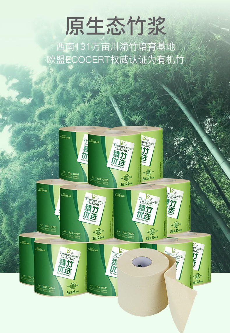 20卷125g康倍宝本色卷筒纸纸巾竹浆卫生纸有芯卷筒纸批发家用