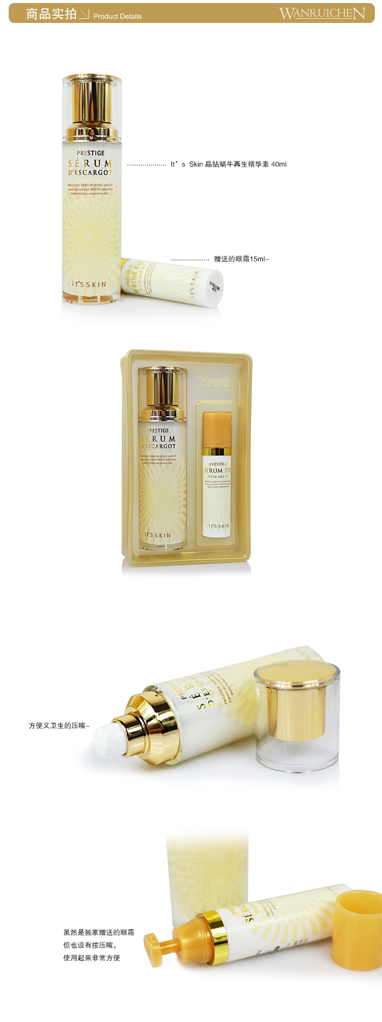 伊思晶钻蜗牛精华眼霜套装40ml+15ml【21年5月】【临期商品不接受退换货】