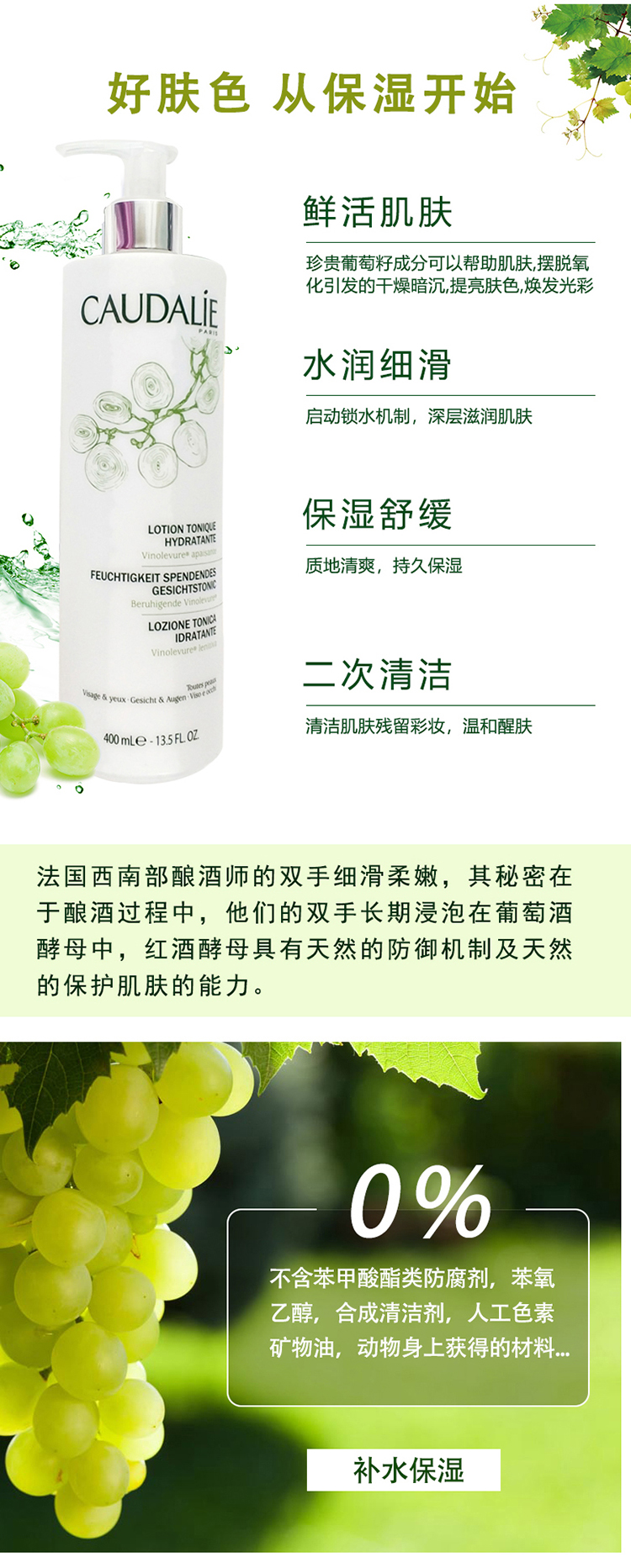 【法国直邮】 欧缇丽(Caudalie)清新净颜卸妆水 400ml
