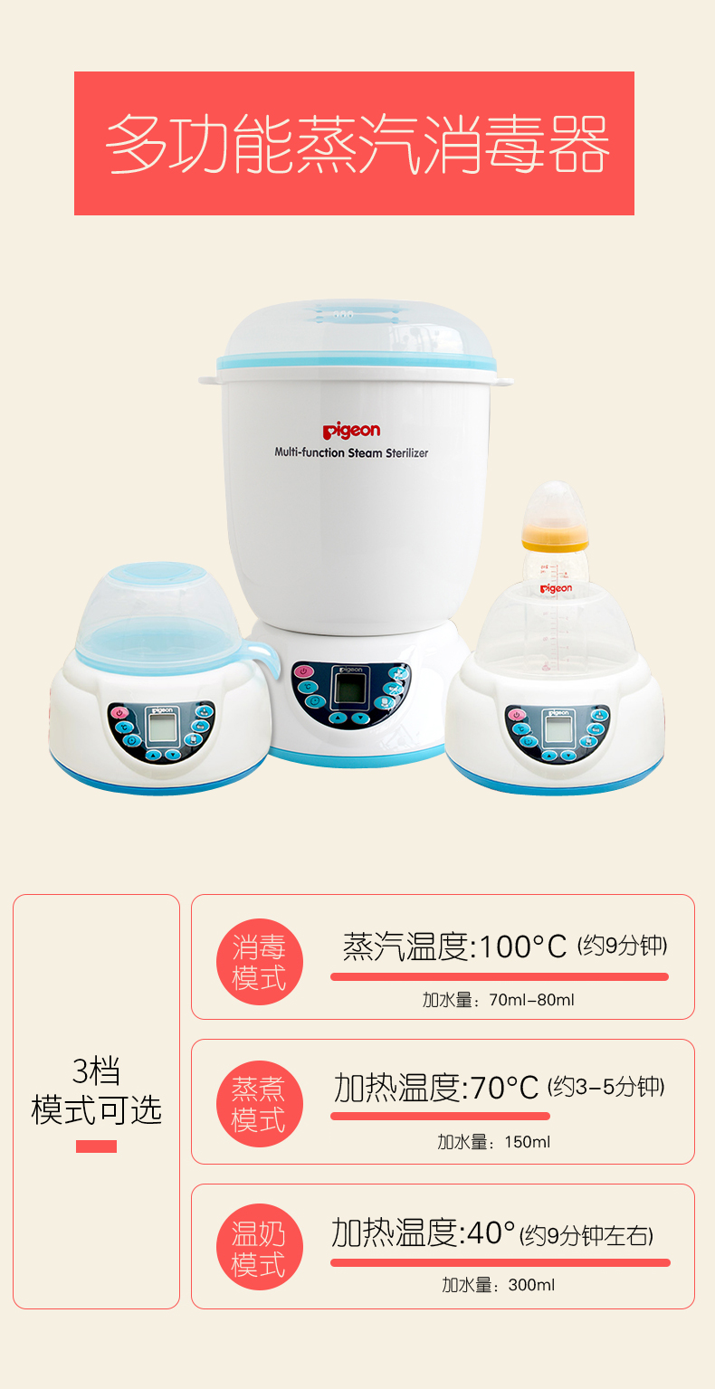 您所在的位置:首页 > 母婴用品  > 喂养用品 > 辅食料理机  > 贝亲多功能蒸汽消毒器(促销装)(RA03+DA34+海绵奶瓶刷)PL266