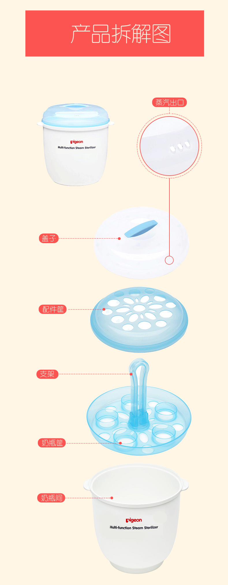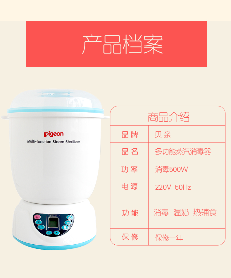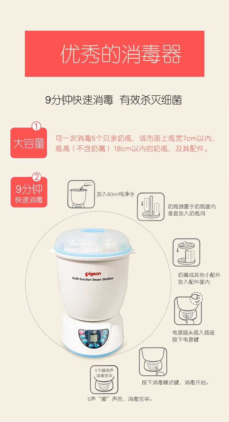 贝亲多功能蒸汽消毒器(促销装)(RA03+DA34+海绵奶瓶刷)PL266