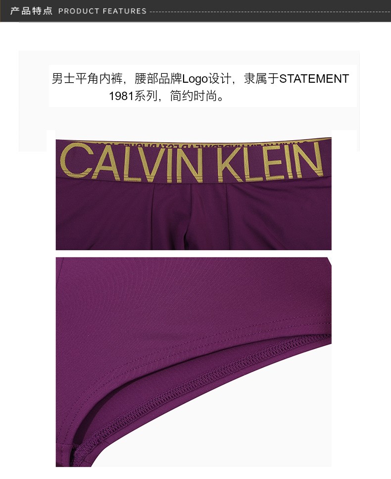 美国 CALVIN KLEIN/卡文克莱 1981系列男士平角2条装 黑色+灰色/藏蓝色+天蓝色 两种组合随机发货 M码