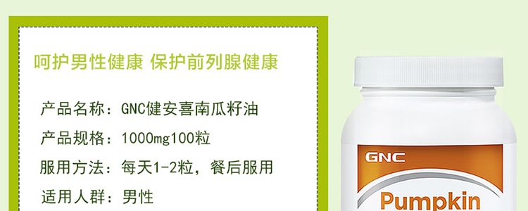 GNC南瓜籽油软胶囊1000毫克100粒