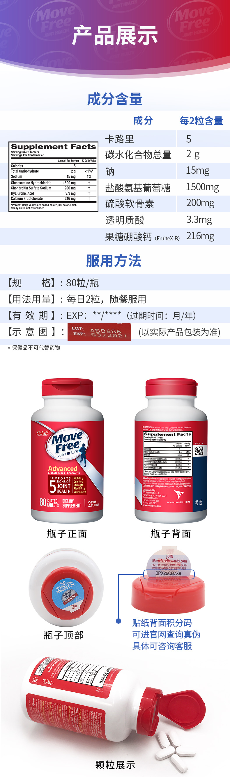 您所在的位置:首页 > 营养保健  > 营养健康 > 关节养护  > 【保税直邮】Move Free维骨力氨糖软骨素片 红瓶80粒